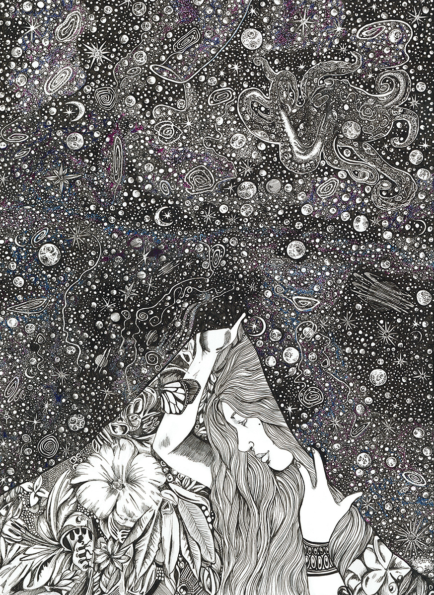 Commissioned illustration as a gift to a friends wife. Illustration titled Her World